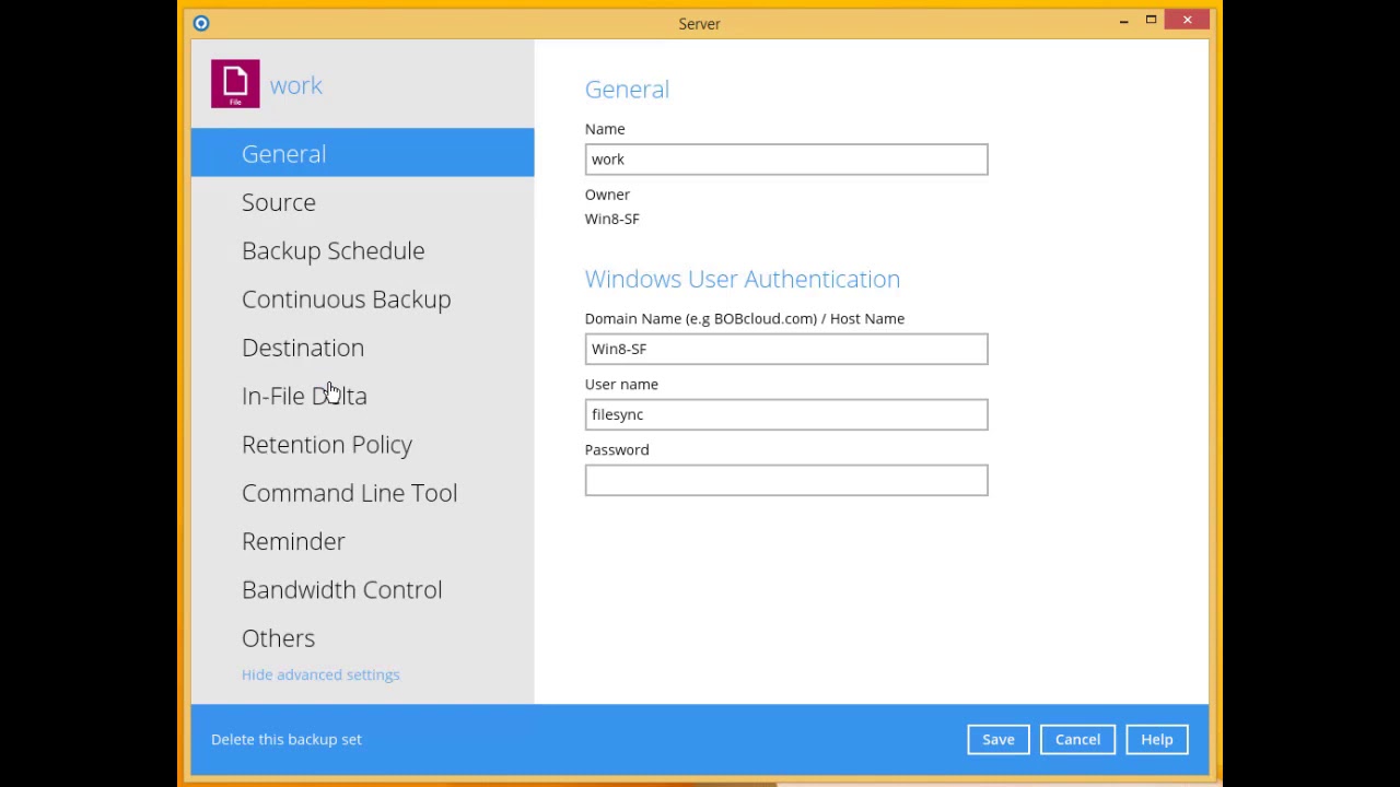 a. Edit the backup set
